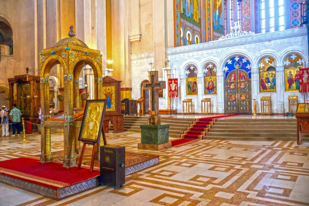 この大聖堂は、ジョージア正教会の総主教座聖堂として機能しており、ジョージア正教会における最も重要な宗教施設の一つとされています。トビリシ市内の高台に位置し、金色に輝く巨大なドームは市内の多くの場所から視認できます。
